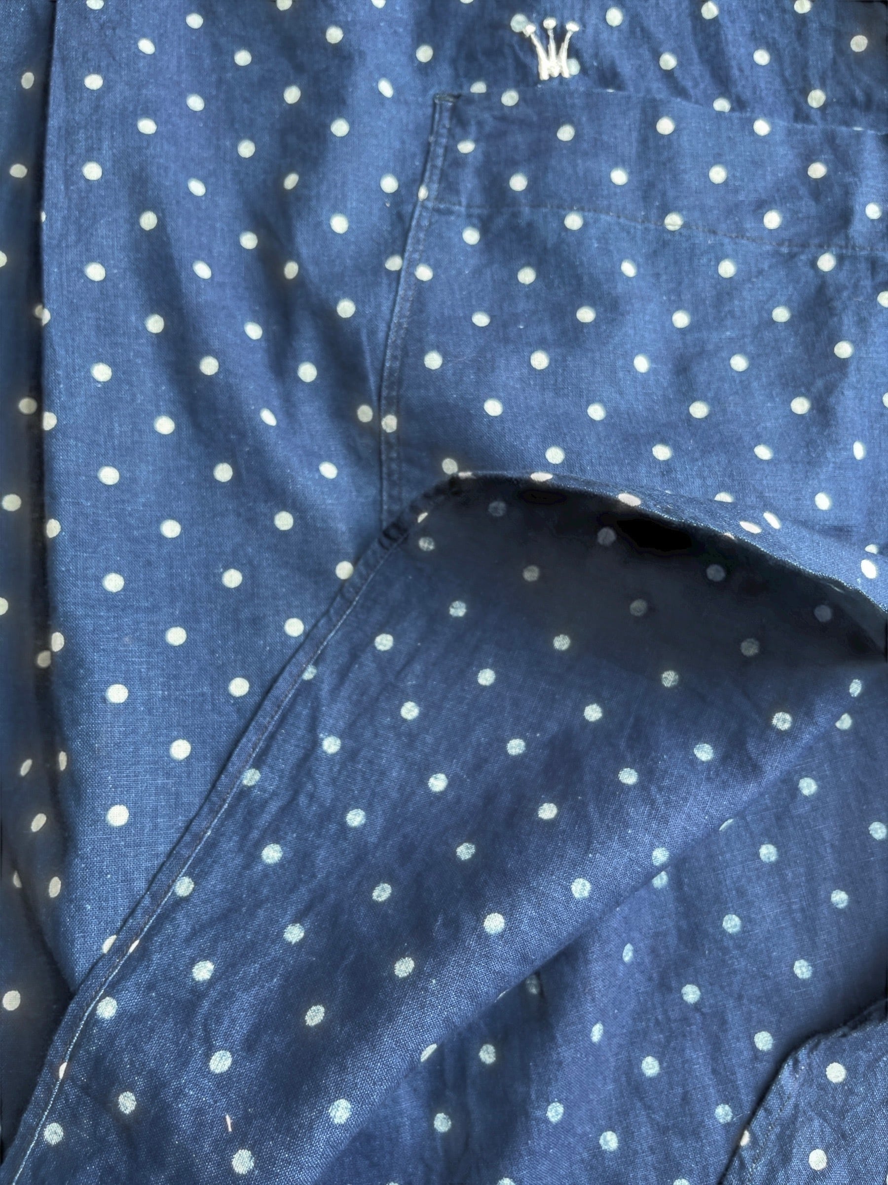 注意としては、他のものと一緒に洗わないことと、生地を傷めないように強くこすらず、押し洗いをすることです。 また、藍染製品は、普段は光が当たらない場所で保管することをおすすめします。 アイロンをかけるとテカリが出てしまうため、アイロンは裏からかけるのが綺麗に仕上げるコツです。