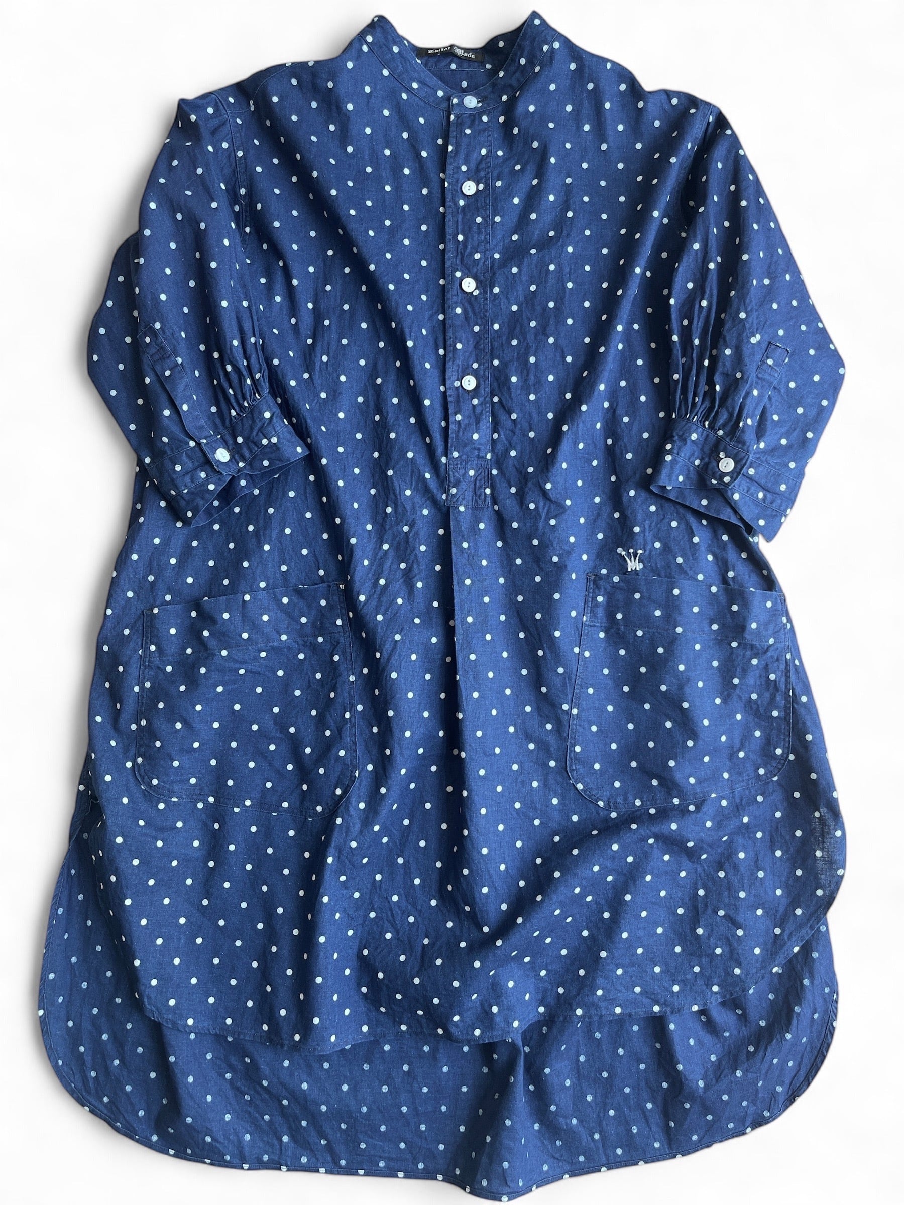 1920年頃のフランスで馬商や農夫が着ていたマキニョンコートをアレンジし、コットンリネンの藍染め素材で作りました。