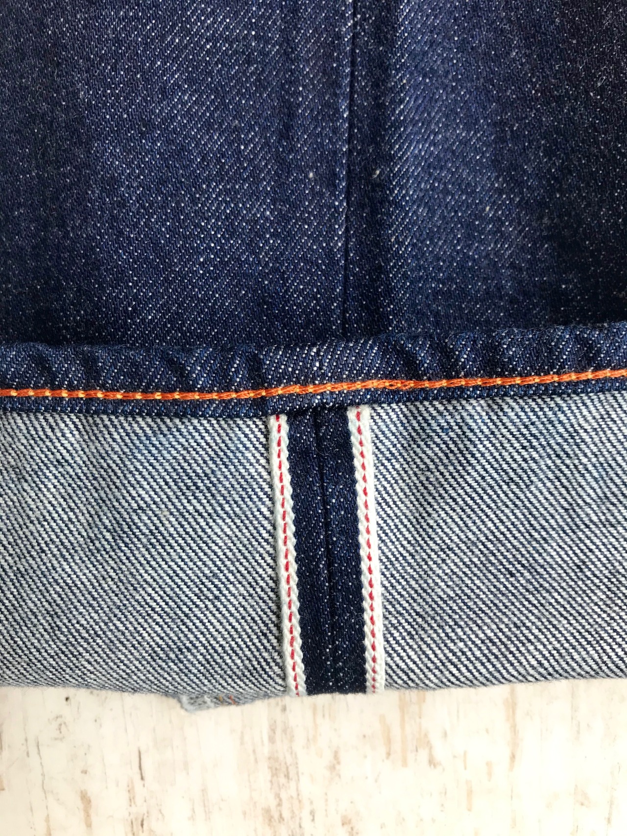 ゆっくりと甘めに織り上げた13,50 オンスデニムは柔らかく、肌触り抜群です。