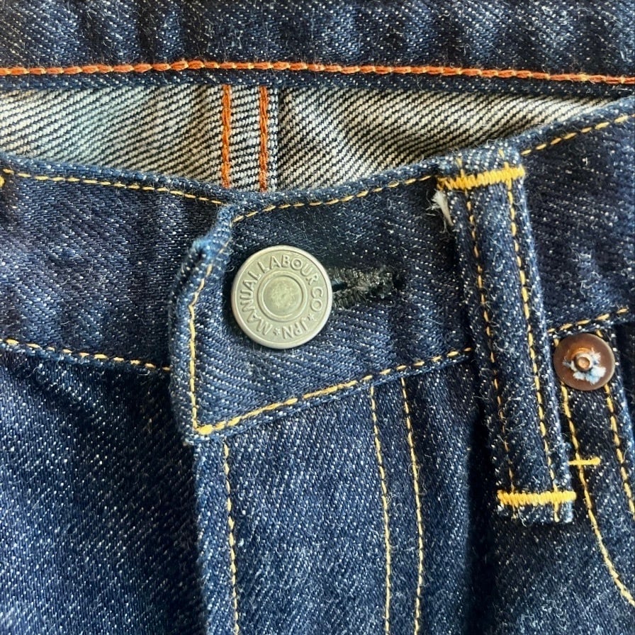 マニュアルレイバーの丸ポケクラシックジーンズです。